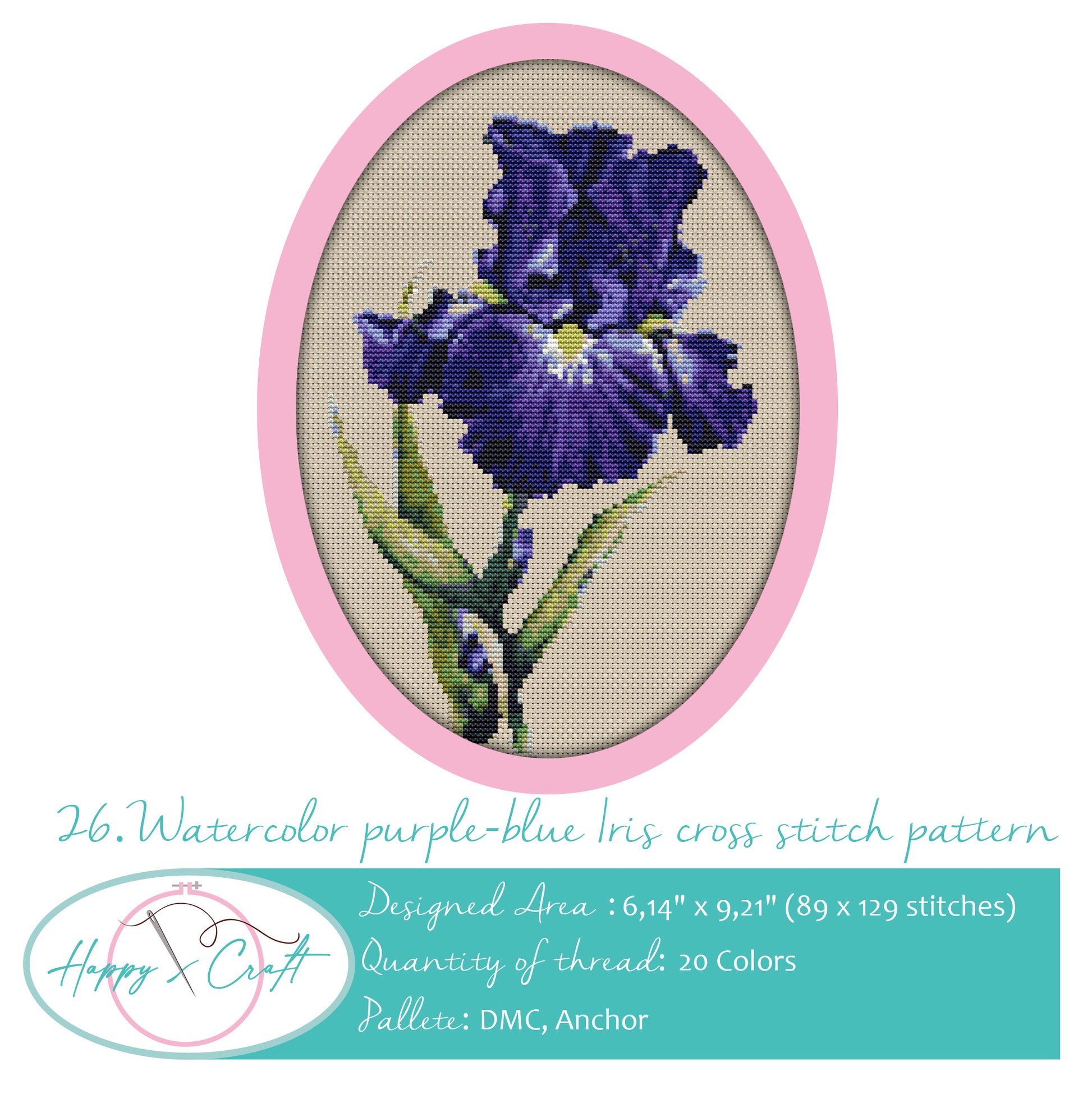 Lila Iris vermittelt eine Botschaft der Weisheit und Komplimente, sie zeugt aber auch von Hoffnung und Glauben. Lila steht für Bewunderung, es ist eine tiefe, beruhigende Farbe, die Ihre Augen streichelt und die Tiefe Ihrer Seele berührt. Für alle Blumenliebhaber da draußen: Es ist nicht nur ein tolles Kreuzstichmuster, sondern auch ein Wunder der Natur, das auf Ihre Aufmerksamkeit und die gemeinsame Zeit wartet, die Sie bei dieser tollen Freizeitgestaltung verbringen! Man sagt, dass Iris im Griechischen für den Regenbogen steht, und das trifft durchaus auf die Realität zu, da es Iris in jeder Farbe des Regenbogens gibt und dass sie auf dem Regenbogen vom Himmel auf die Erde herabsteigt und eine Botschaft von Göttern überbringt. Seien Sie also bereit um herauszufinden, welche Nachricht an Sie gerichtet ist?
