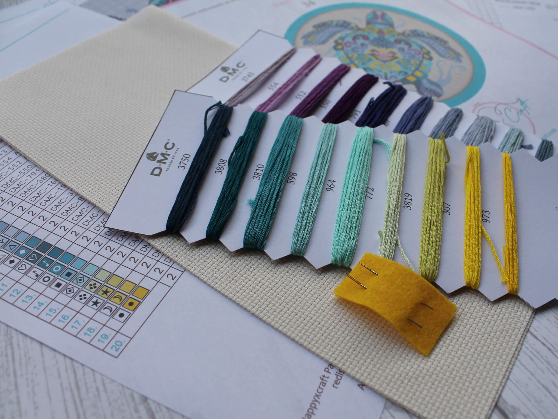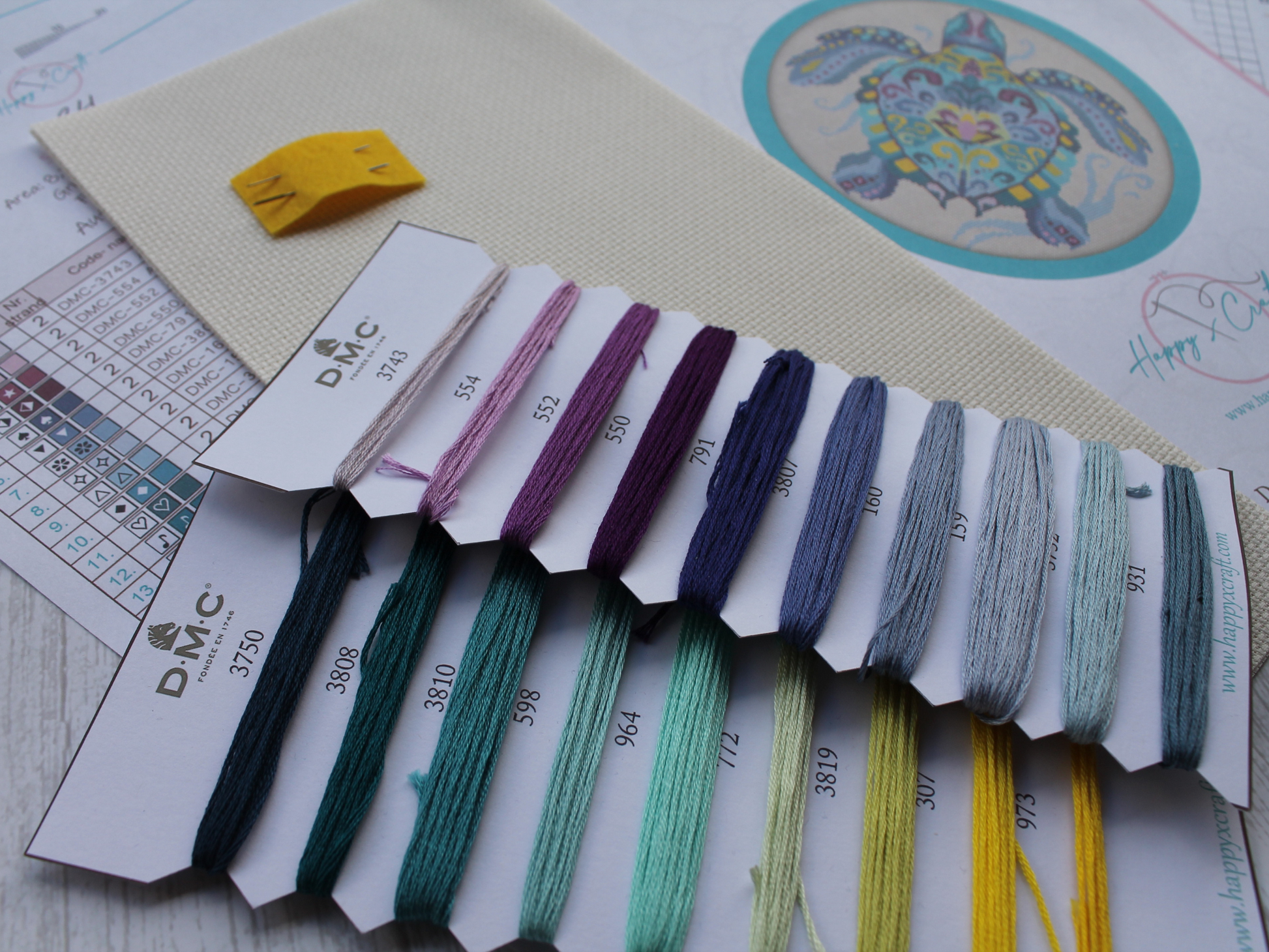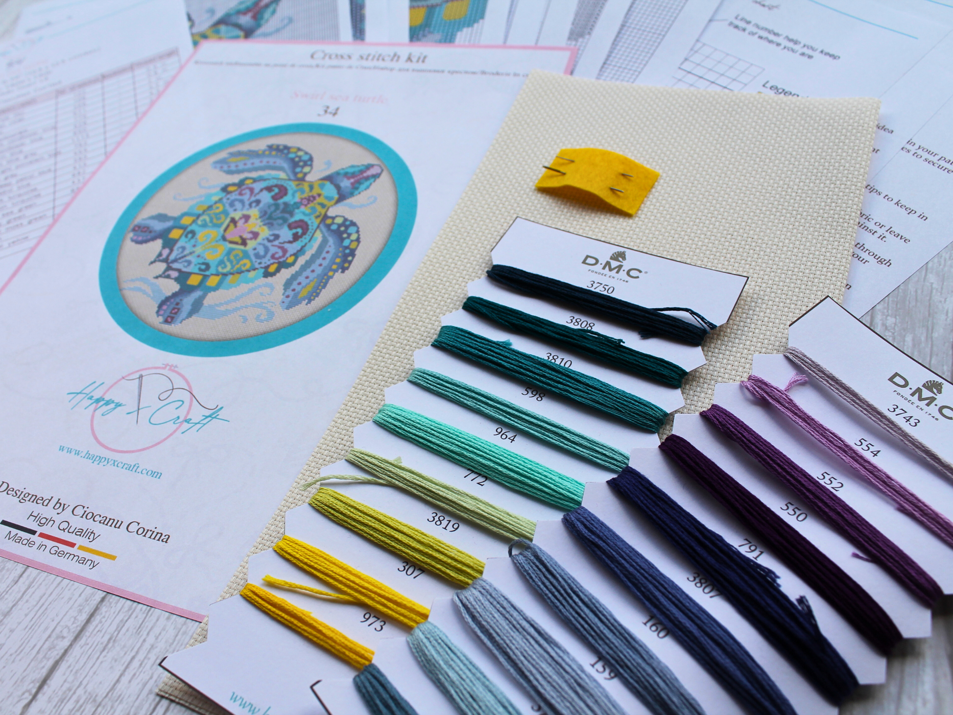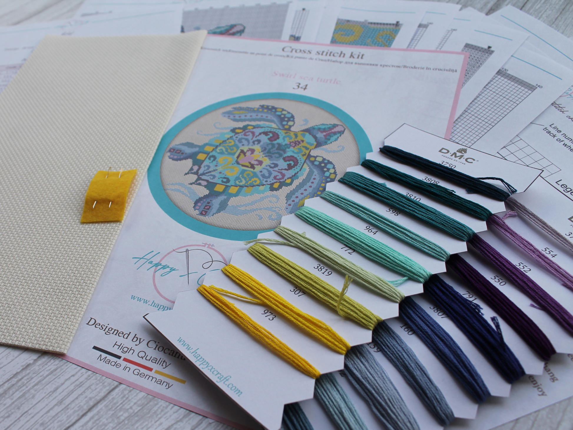 Wirbel-Meeresschildkröten-Kreuzstichset von Happy x craft. Zählmuster-Kreuzstichset mit Meerestieren