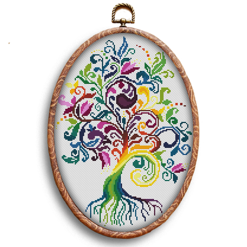 Life… life is in everything around us, and it makes our experience on earth unique. When I think about life I think of growth, development, change, and maturity, I think about the sun that nurtures our souls and about the things that we give back to the universe…just like a tree. We have our roots deep into the ground and our souls tending to connect to the higher self, to the cosmic energy, just like a tree we flourish, we change, and we try to stand up for ourselves and bring something into this world. People say that nature heals, that listening to its voice brings you inner peace and joy, and that connecting to the living beings around us makes us more connected to ourselves, that’s what inspired me to create this beautiful cross-stitch pattern. I tried to express the fullness of this experience called life through the multiple colors contrasting from bright to dark, through the multiple shapes and curves of the leaves because yes, life is made out of everything: the good and the bad, the beautiful and the ugly. If you feel like having a moment of meditation, be sure you’ll enjoy this beautiful pattern!