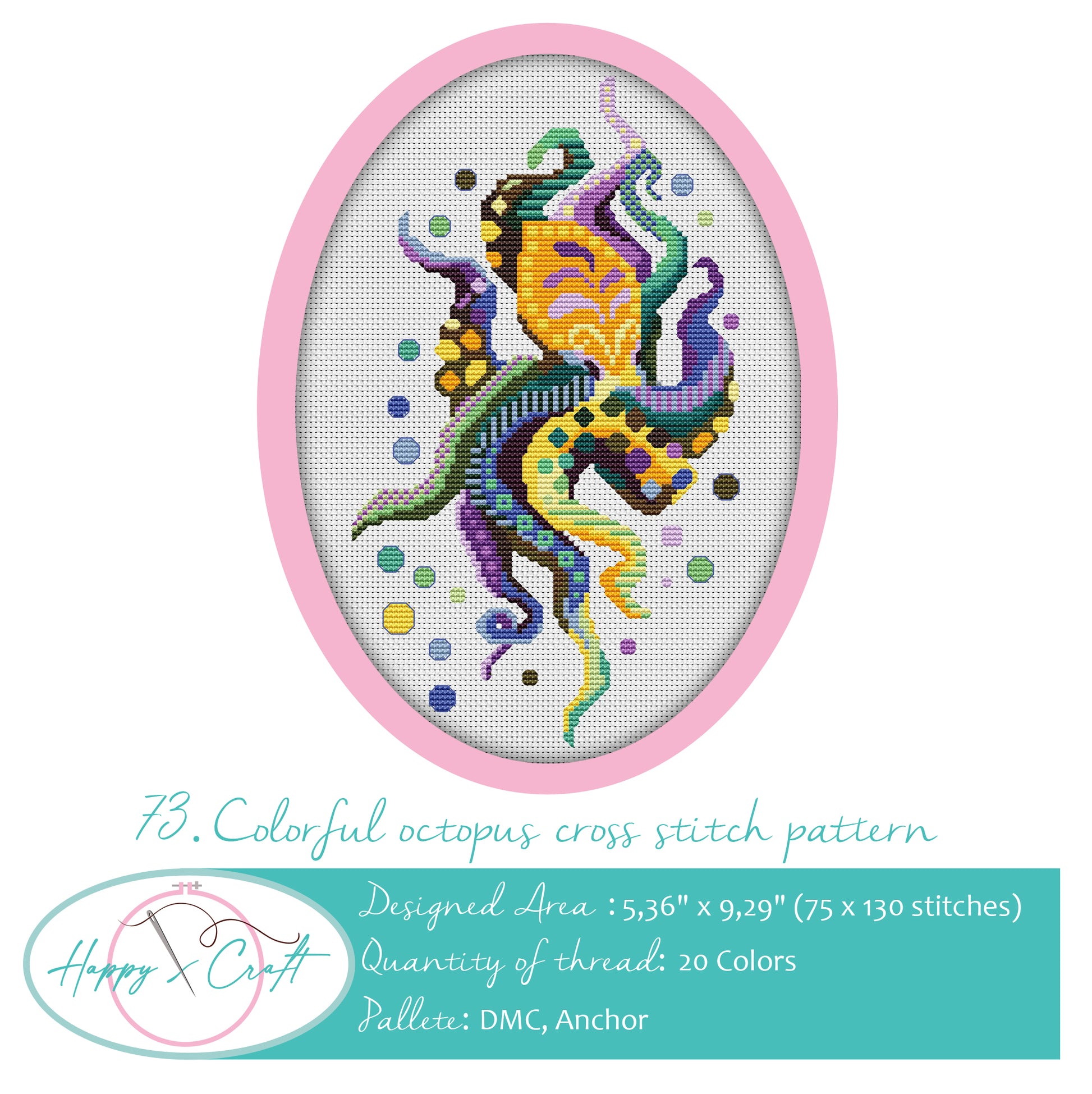 I am sure that you’ve already noticed my big passion for the underwaters. So here I present you another one of my works: a funny dancing octopus surrounded by playful bubbles that will bring a sense of fun and whimsy to any room. This sealife-themed collection is perfect for any ocean lover or beachcomber just like me. I’ve always been thinking that these interesting creatures might, somewhere in another universe, be great dancers! So I guess it is making it the perfect centerpiece for a bubble party! So if you like having fun and trying something unusual and new, try this playful cross-stitched pattern!
