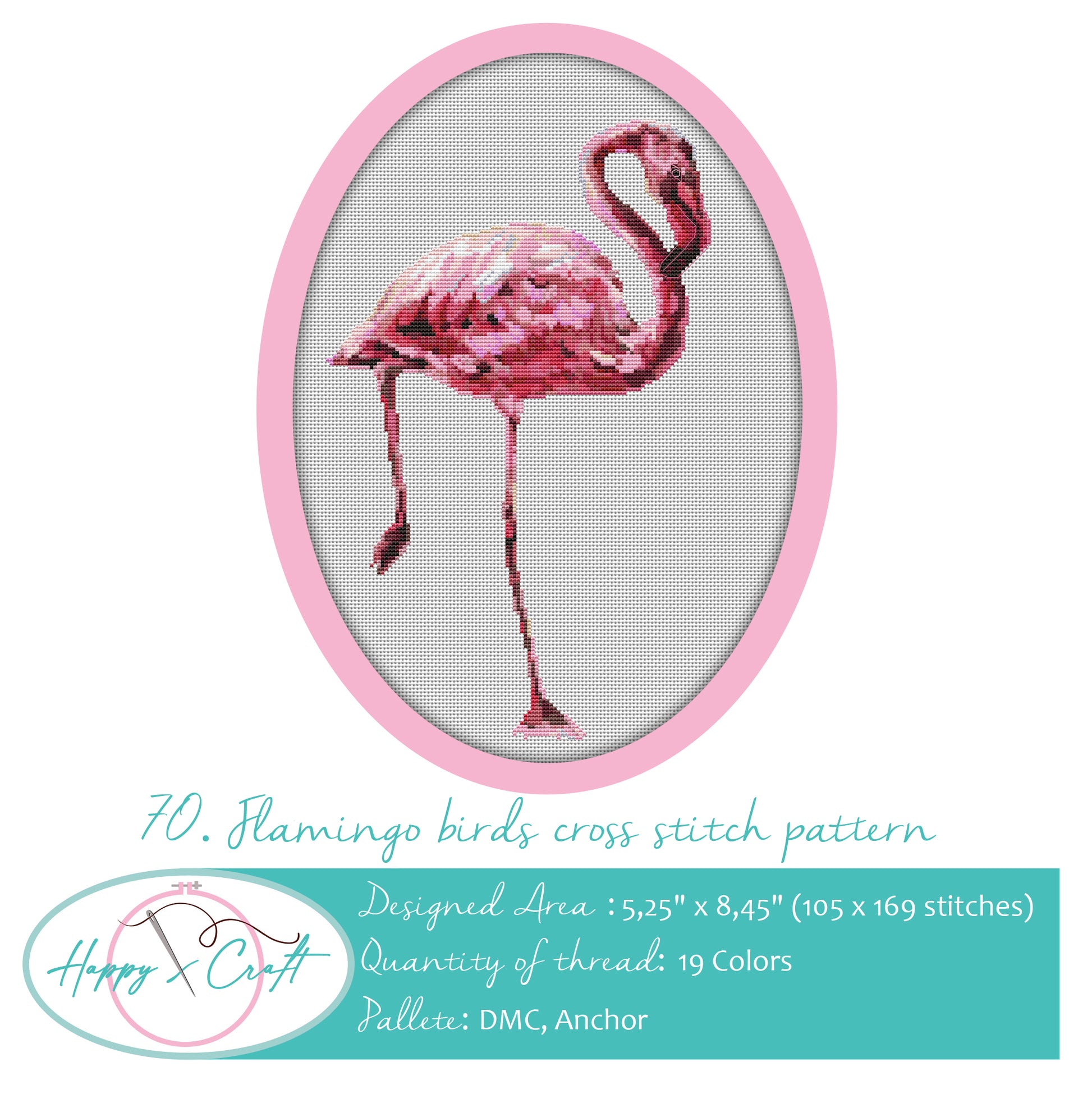I remember being a child and listening to a song about these weird and interesting birds. It made me wonder: are they really pink?! How comes a pink bird exists?! All that I’ve seen till then were only grayish ones so how would it be possible? Oh well, it is! Mother nature really does wonders and makes me more and more surprised day after day. I guess my childhood memory is one of the factors that made me create this flamingo bird cross-stitch pattern which is a colorful and fun design. It's perfect for beginners and experienced stitchers! So dream pink, feel pink and make everybody around you feel your love through this unique pattern!