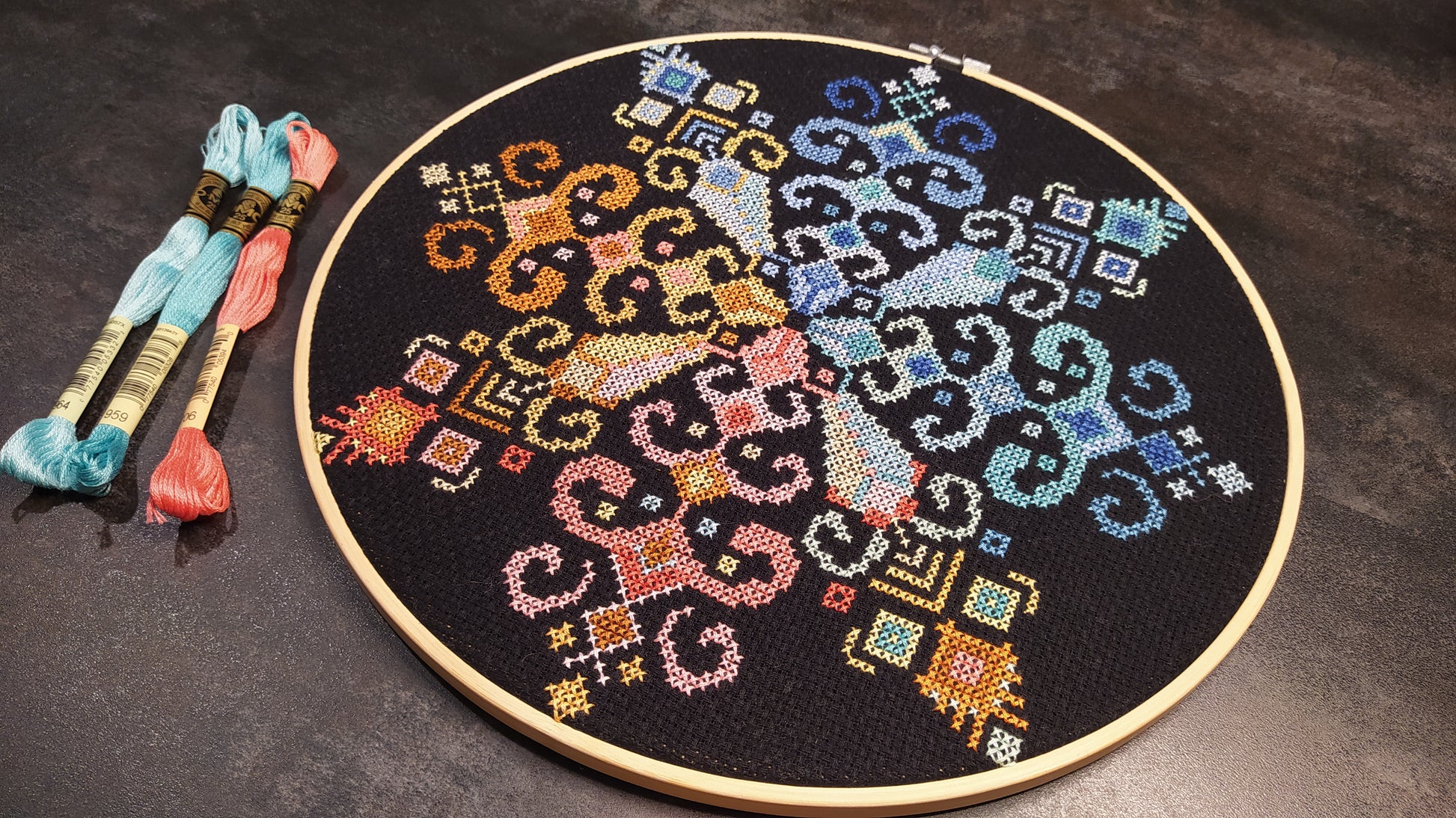 Do you like winter? If you do, you’ll simply adore this original snowflake with unusual ethnical motives! But even if it’s not your preferred part of the year, no problem, it can however suit you perfectly, as it contains the colors of all 4 seasons. Yellow, blue, red, green, just let yourself drown in this magical dance of shadows! The patterns, on the other hand, will offer you a meditative state while you’ll be traveling along the different curves and forms of this magical snowflake.