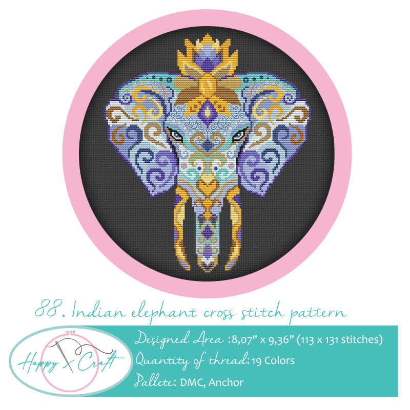 The elephant- a creature so special, that it even proves to be hard to describe in all of its complexity. Associated with luck and manifestation, clearing obstacles, and achieving success, in some cultures it even symbolizes peacefulness and wisdom, grace and temperance. If you have a beautiful family or dream about creating one, don’t hesitate to make this wonderful animal your totemic one, as it is very strongly family-orientated! The purely Indian ornaments of this cross-stitch pattern will take you far-far away, its colors will fill you with a sense of joy and peace and the wavy patterns will carry your spirit and will rock your mind away from daily tasks. Spoil yourself with this magical cross-stitch pattern, and let the Indian beauty become part of your life!