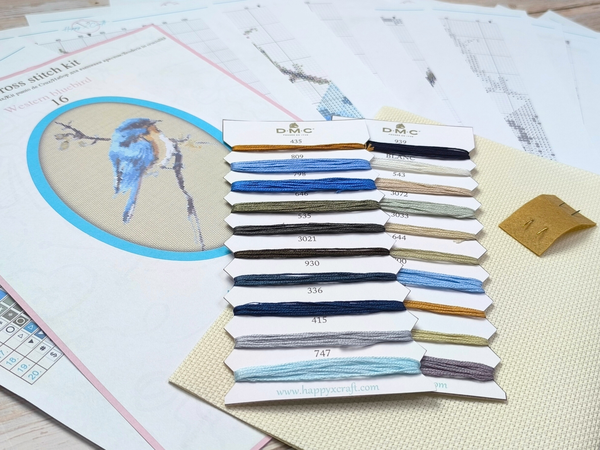 Cross Stitch Kit Western Blue Bird – Complete Embroidery Set with DMC Threads & Pattern | Nature Bird Needlework Kit